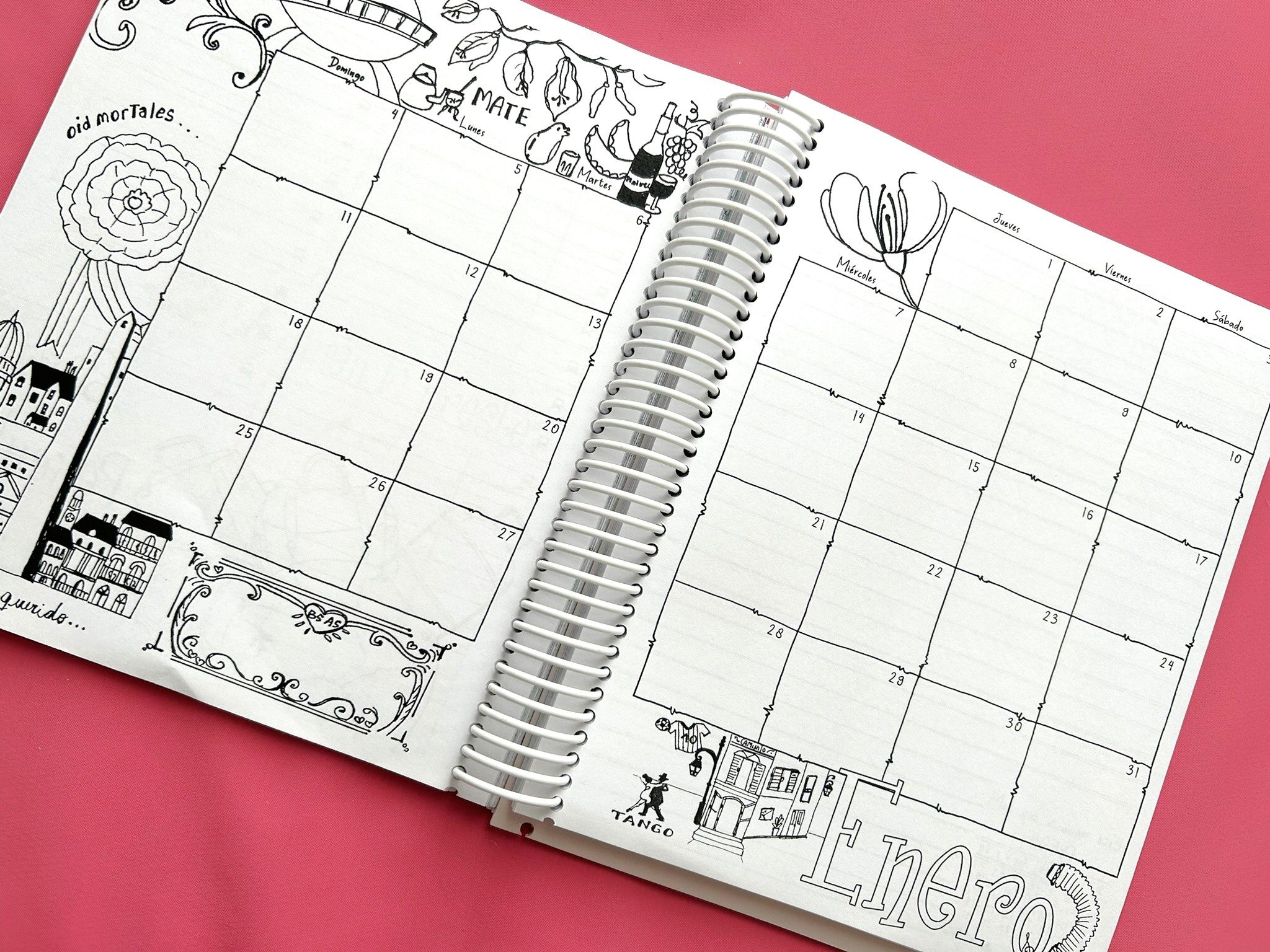 Los meses se ven al abrir la agenda, de forma completa, y luego de cada uno de ellos, hay cuatro páginas rayadas para anotaciones extras.